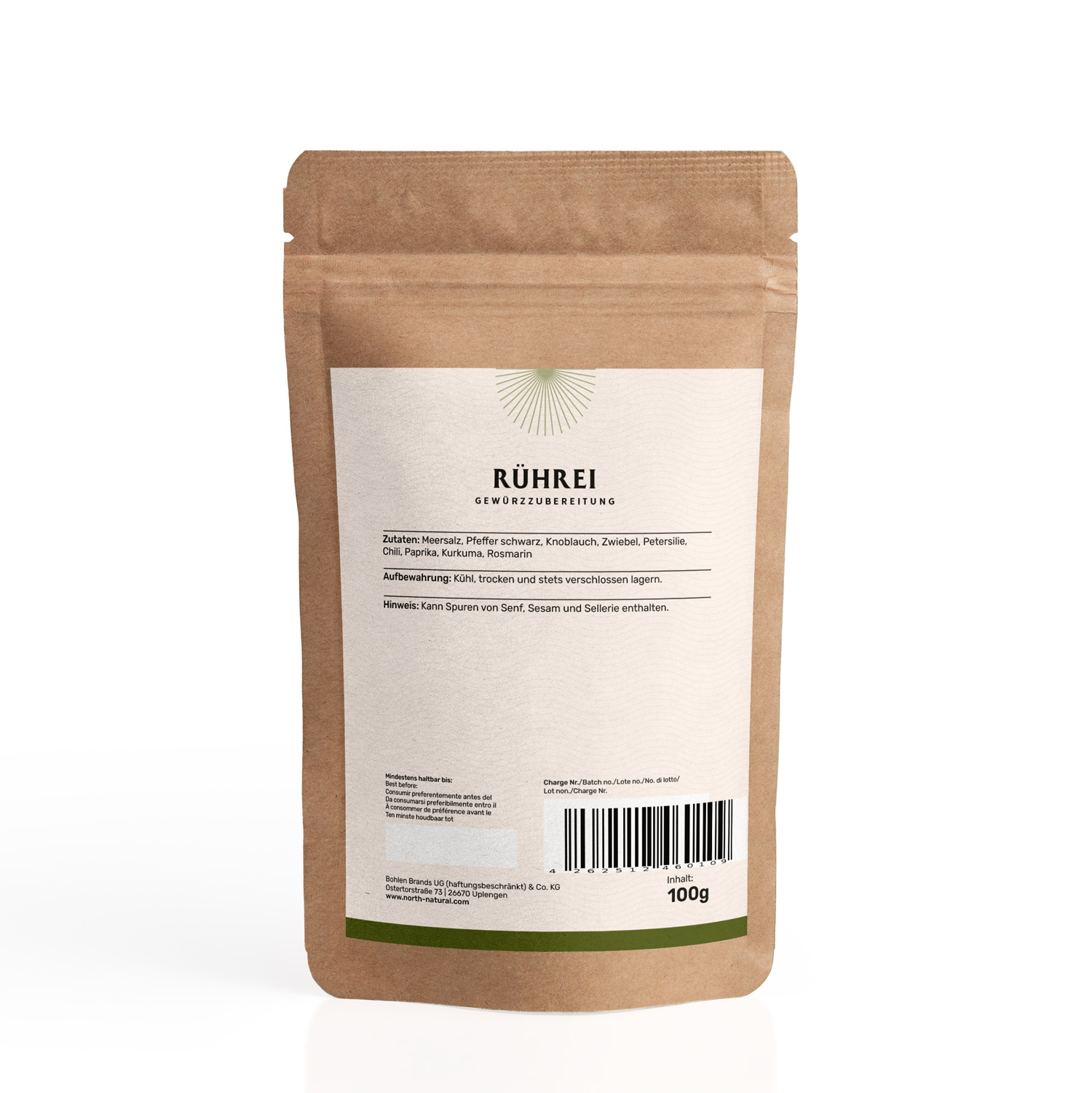 Entdecken Sie die North Natural Rührei Gewürzmischung – eine sorgfältig ausgewählte Kombination aus hochwertigen Gewürzen, die Ihrem Rührei den perfekten Geschmack verleiht. Diese vegane und glutenfreie Mischung vereint harmonisch Meersalz, schwarzen Pfeffer, Knoblauch und Zwiebel mit aromatischer Petersilie, einer Spur Chili, Paprika, Kurkuma und Rosmarin. Ideal für alle, die ihr Frühstück mit ausgewogenen Aromen bereichern möchten. Die Gewürzmischung eignet sich nicht nur für klassisches Rührei, sondern auch für Tofu-Scramble und andere vegane Ei-Alternativen. Die praktische Gewürzmischung von North Natural ermöglicht es Ihnen, mit nur einer Zutat den vollen Geschmack zu entfalten, ohne verschiedene Gewürze einzeln dosieren zu müssen. Verfeinern Sie Ihre Frühstückskreationen mit dieser ausgewogenen Komposition und genießen Sie den reichhaltigen Geschmack Ihrer Lieblingsspeisen.